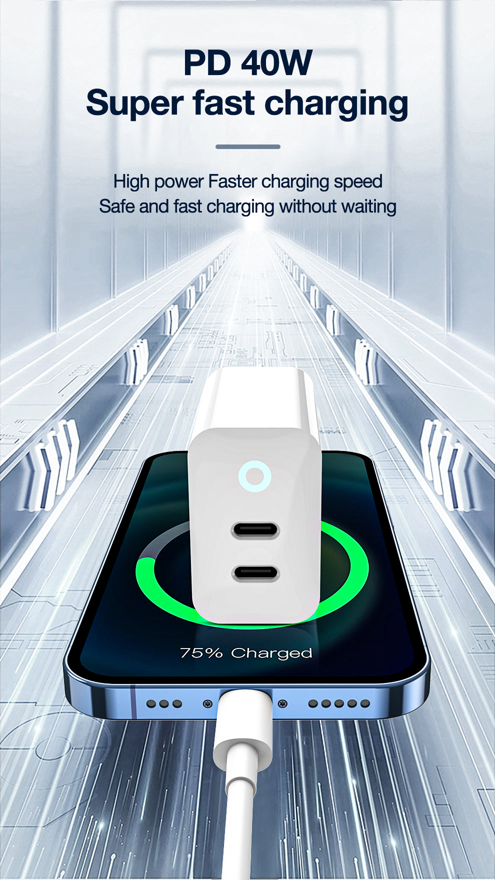 Jellico 40W 2 Port USB C To Lighting Fast Charger Adapter EU19